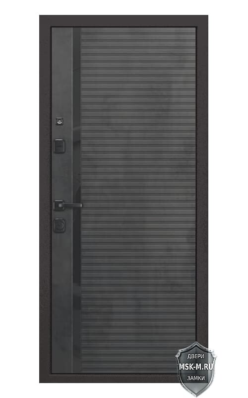 Накладная МДФ панель ФЛС-603 с вертикальной вставкой стекла с замочной части и широкими горизонтальными фрезерованными полосами во все полотно, предназначена для утепления, шумоизоляции и декоративной отделки входной металлической двери. Установка. Любой размер и цвет. Гарантия!